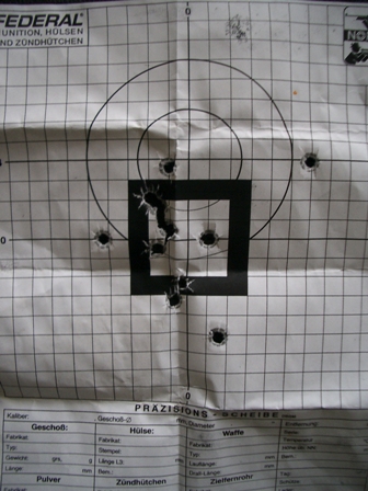 I AGREE ABOUT THE 50 YARD THING. Here is my last outing at 100 yards..and this is after having not shot anything for the last 10 years.