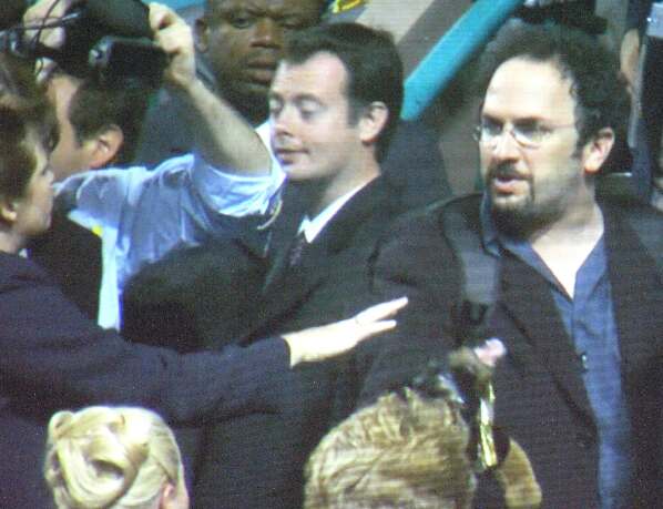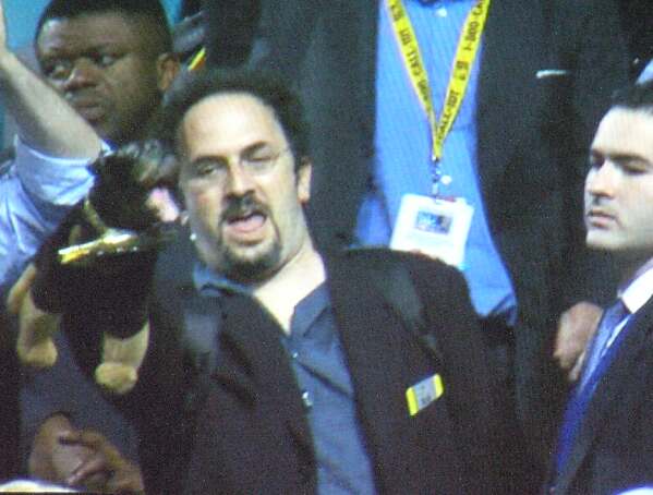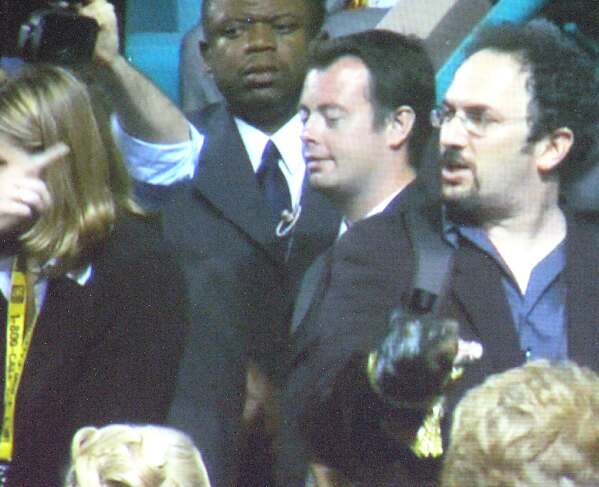 Using what I like to call Time-Slice photography, I project an HDTV image and go through it frame by frame until I see the right picture. Then with a digital camera I shoot the picture from the screen. Short of having an Avid editor this works very well for capturing interesting images from TV. There's a story behind these casual pics. HDNet sends the whole convention feed over the Dish Network in HD. Once in a while you get to see something like this. |
